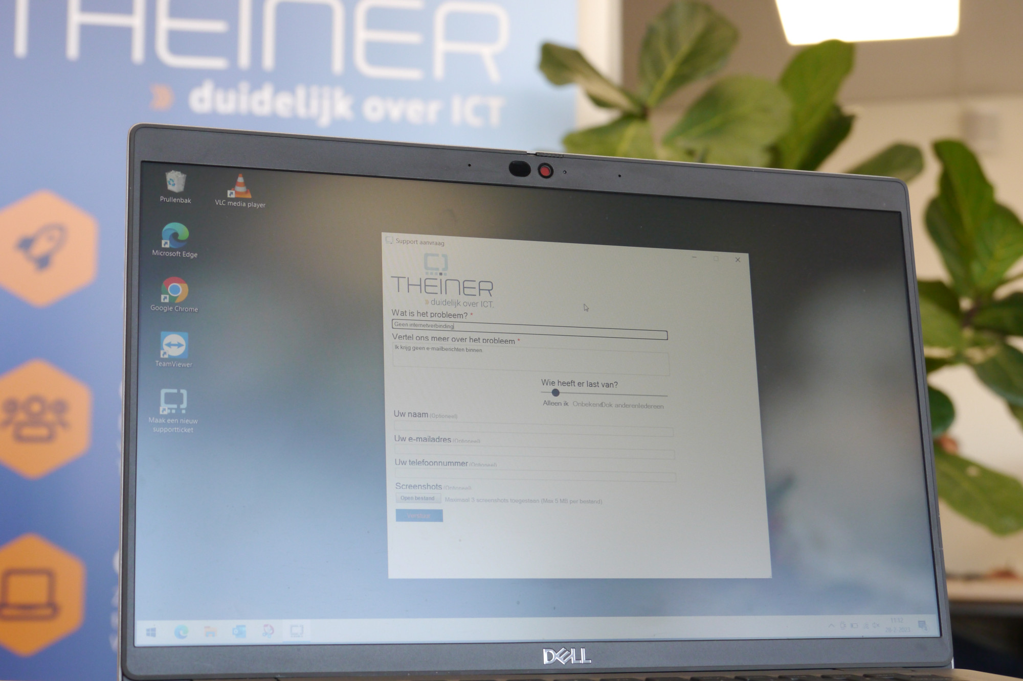 Om nog makkelijker en sneller een probleem door te geven als klant hebben we het supportticket ontwikkeld. Het icoontje staat op jouw bureaublad van je eigen apparaat. Als je dit opent kun je een formulier invullen en versturen naar Theiner ICT. Wij ontvangen jouw vraag en lossen het op. En we hebben meteen alle juiste gegevens, ook van je apparaat. Handig toch!
